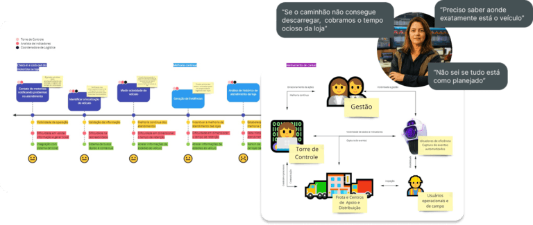 A partir de pesquisas em campo e entrevistas em profundidade, ficou claro que o desafio do cliente não era saber onde estavam as carretas-baú, mas sim: